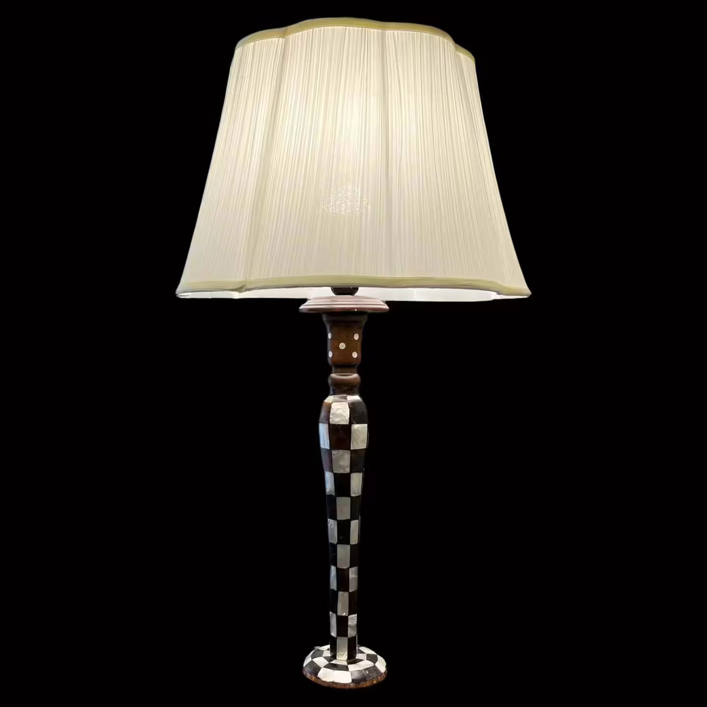 Handmade Table Lamp with Mother of Pearl Inlay and Walnut Finish