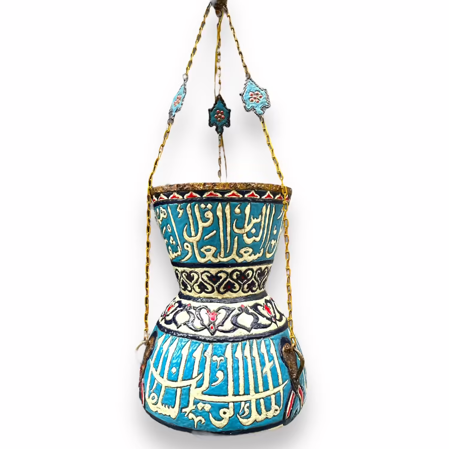 Hand-Crafted and Painted Stunning Enameled Mosque Lamp with Arabic Calligraphy.