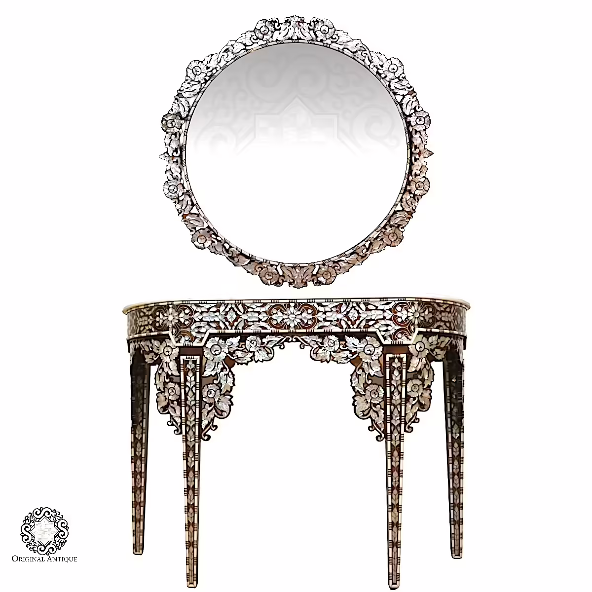 Hand-crafted Console and Mirror Set | Mother-of-Pearl Inlay | our design
