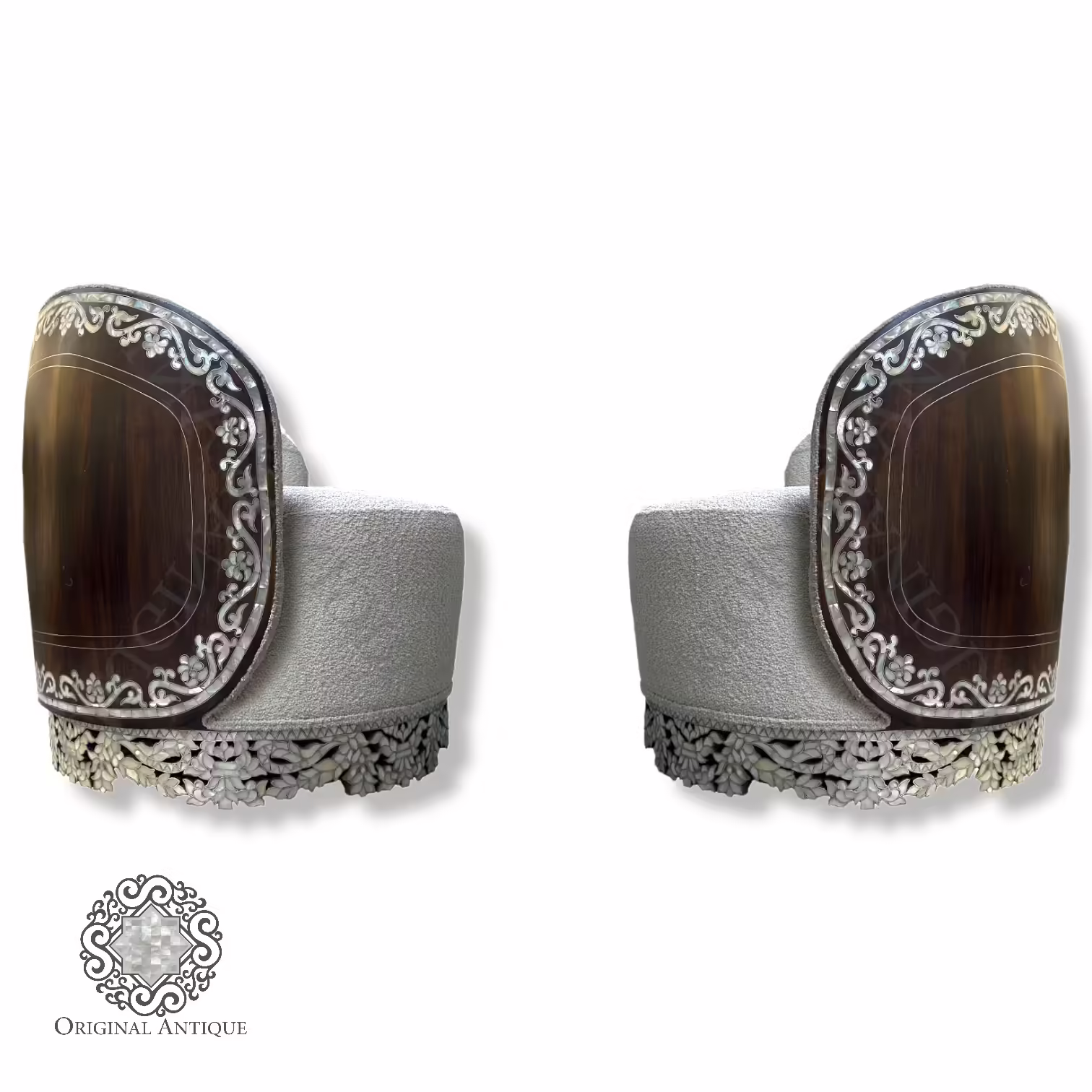 Hand-Crafted Wooden Mother-of-Pearl Inlay Chairs.