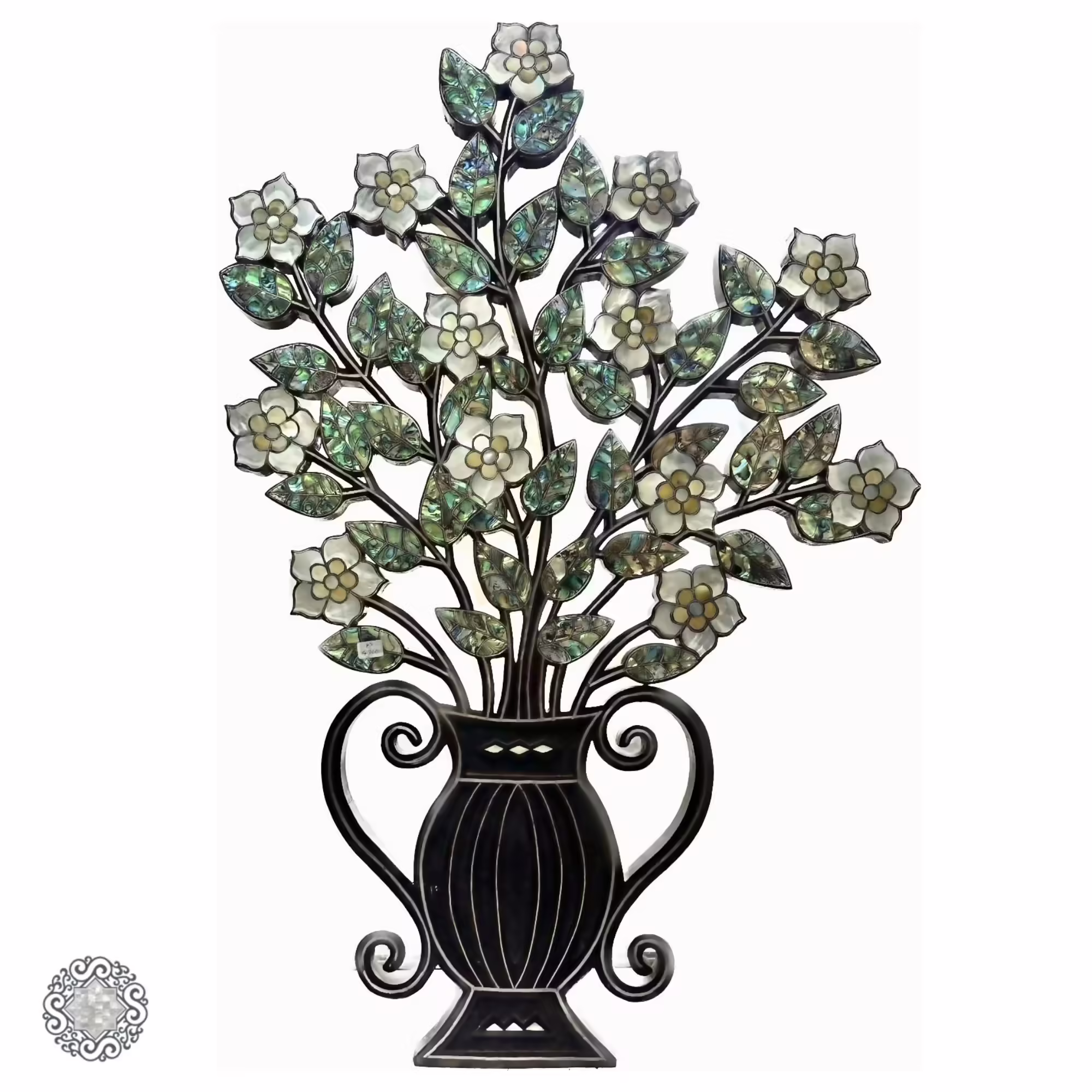 This exquisite wall frame flower pot is a true masterpiece, handcrafted from high-quality wood and adorned with mother-of-pearl inlay and intricate engraving. The combination of the natural wood, delicate mother-of-pearl, and precise engraving work together to create a stunning piece of art that will elevate any space. This unique flower pot is not only a beautiful decoration but also a functional addition to any home. The intricate design and skilled craftsmanship make it a standout piece that will be treasured for generations. Hang this remarkable wall frame flower pot in any room to add a touch of elegance and traditional Middle Eastern beauty to your home decor.