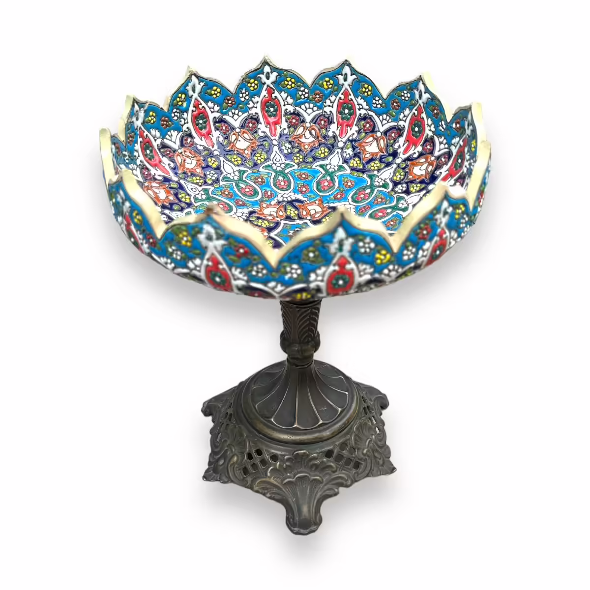 Unique Hand-Made Enamel Bowl with Vintage Metal Base: A One-of-a-Kind Art Piece.